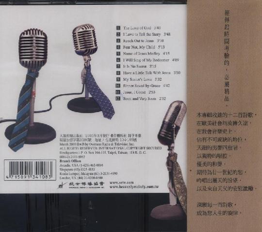 本专辑收录的十二首诗歌,在欧美社会均流传久远,在教会音乐史上,佔有不可或缺的地位。天韵的男声四重唱,以独特的唱腔,优美的和声,期待為廿一世纪的您,吟唱出属天的盼望,以及来自天父的安慰激励。2003年製作出版。