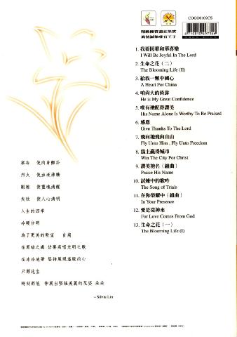 这张王子音乐专辑包括了一本合唱歌本,里面收录了13首歌曲。推荐给教会诗班及带领者。 愿透过这样优美的声音和音乐使弟兄姐妹的心灵再次被更新。寒冷 使肉身颤抖,烈火使血液沸腾,艰难使灵魂清醒,失败使人心清明,人生的四季,冷暖分明,为了更美的盼望 自期。在黑暗之处 仍要高唱光明之歌,在冰冷地带,坚持展现温暖的心,只愿此生,时刻都能,伸展出坚强美丽的花姿朵朵。