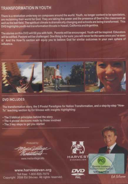 There is a revolution underway on campuses around the world. Youth, no longer are contented to be spectators. They are reclaiming their world for God. They are taking the power and the presence of God to the classroom as well as the ball field. The spirtual climate is dramatically changing and schools are being transformed. This DVD highlights youth-led transformation thrusts in Hawaii, California and Argentina.