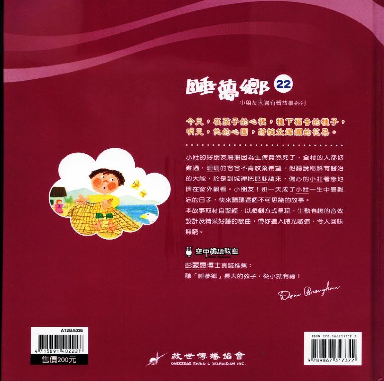 小壮的好朋友珊珊因为生病了竟然死了,全村的人都好难过,珊珊的爸爸不肯放弃希望,他听说耶稣有医治的大能,于是到城里把耶稣请来,伤心的小壮着急地挤在窗外观看。小朋友!那一天成了小壮一生中最难忘的日子,快来听听这个不可思议的故事。本故事 取材自圣经,以戏剧方式呈现,生动有趣的音效设计及精采好听的歌曲,带你进入时光隧道,令人回味无穷。