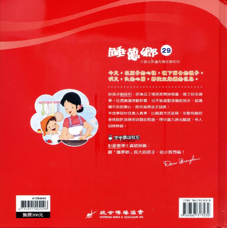 好孩子刘民和,因为交了坏朋友开妈吸毒,做了好多错事。任凭妈妈哭断肝肠,也不能感动浪荡的儿子,但妈妈不死的信心,终究换得浪子回头!本故事 取材自圣经,以戏剧方式呈现,生动有趣的音效设计及精采好听的歌曲,带你进入时光隧道,令人回味无穷。