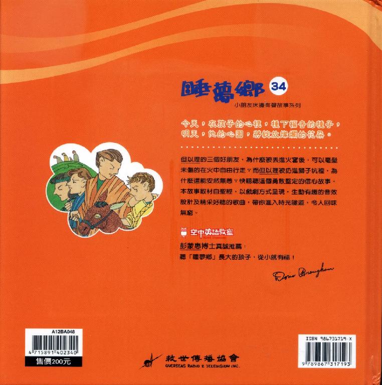 但以理的三个好朋友,为什么被丢进火窑后,可以毫发未伤的在火中自由行走?而但以理被扔进狮子坑里,为什么还能安然无恙?快听听这个勇敢坚定的信心故事。本故事 取材自圣经,以戏剧方式呈现,生动有趣的音效设计及精采好听的歌曲,带你进入时光隧道,令人回味无穷。