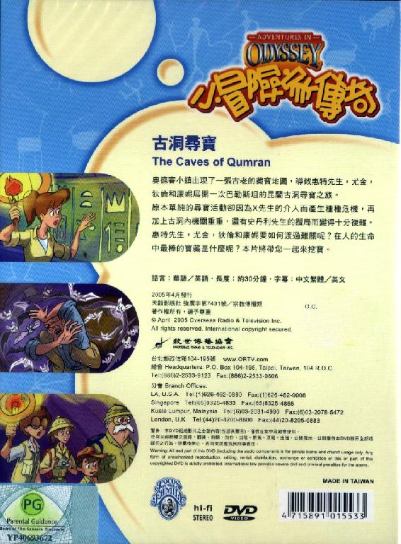 奥德赛小镇出现了一张古老的藏宝地图,导致惠特先生,尤金,狄伦和康妮展开一次巴勒斯坦的昆兰古洞寻宝之旅。 原本单纯的寻宝活动却因为X先生的介入而产生种种危机,再加上古洞 内机关重重,还有史丹利先生的搅局而变得十分复杂。惠特先生,尤金,狄伦和康妮要如何渡 过难关呢?在人的生命中最棒的宝藏是什么呢? 本片将带您一起来挖宝。