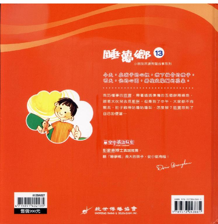 乖巧懂事的恩宝,带着妈妈准备的五个饼两条鱼,跟着大伙儿去见耶稣。但是到了中午,大家都不肯散去,肚子饿得咕噜咕噜叫,怎么办?恩宝想到了自己的便当...